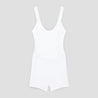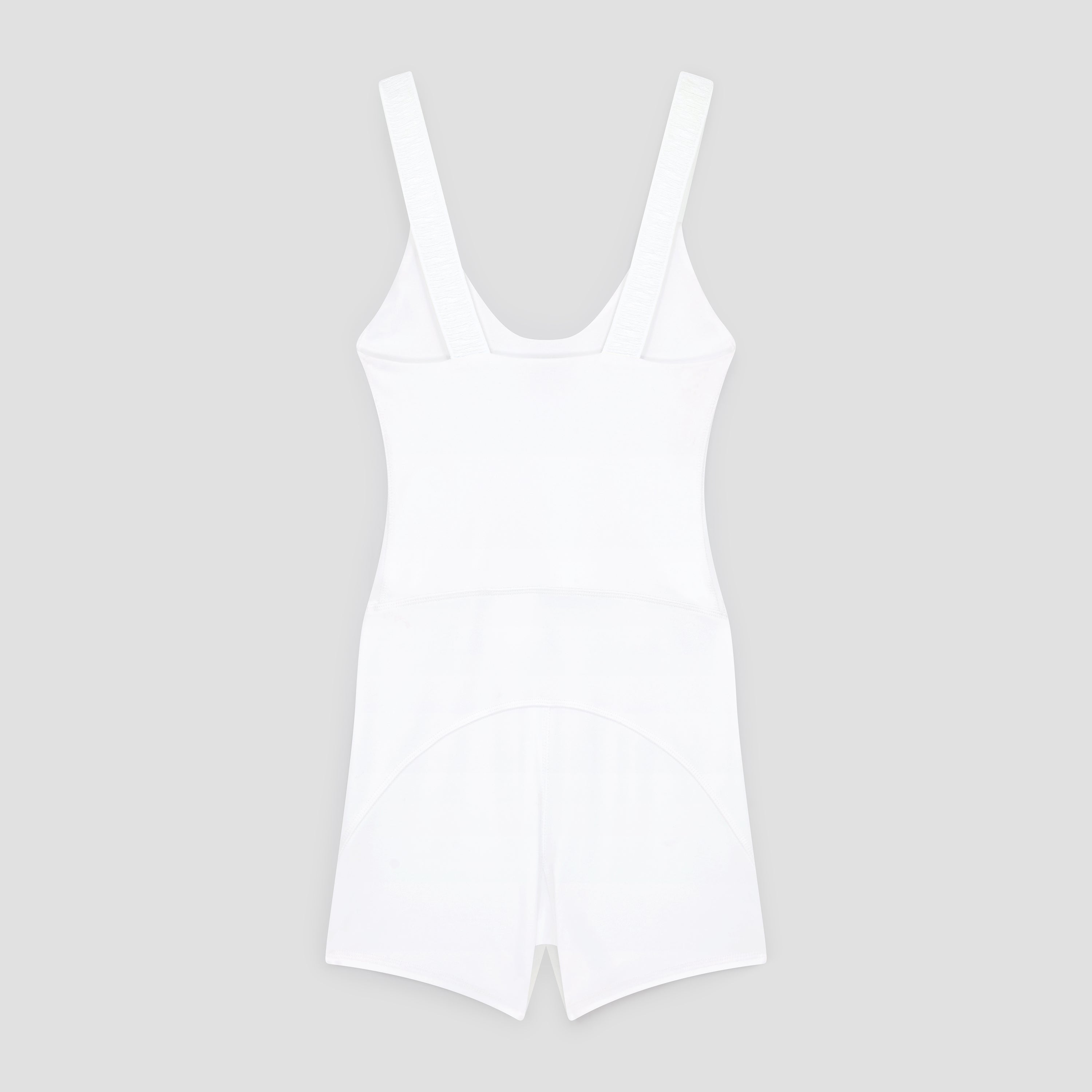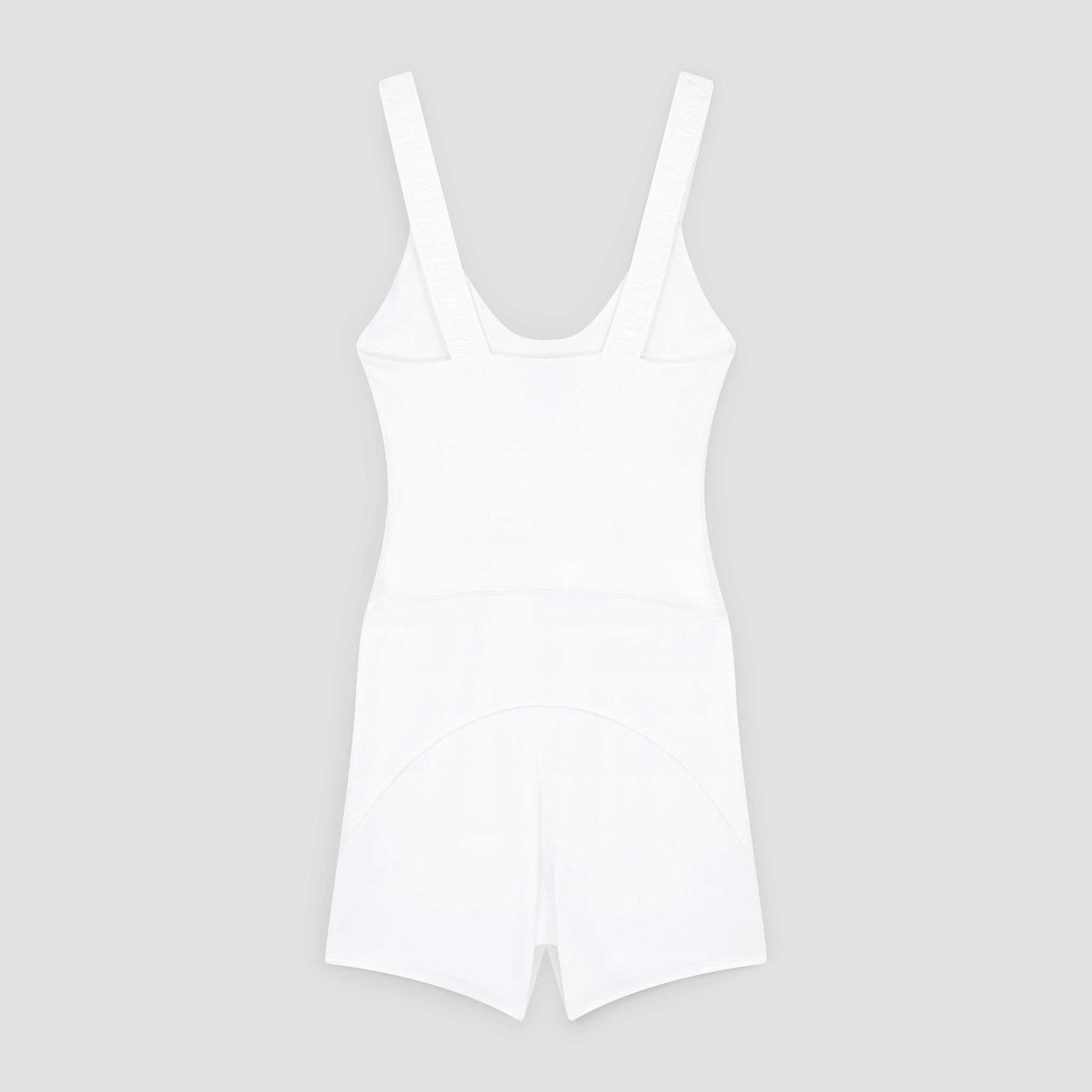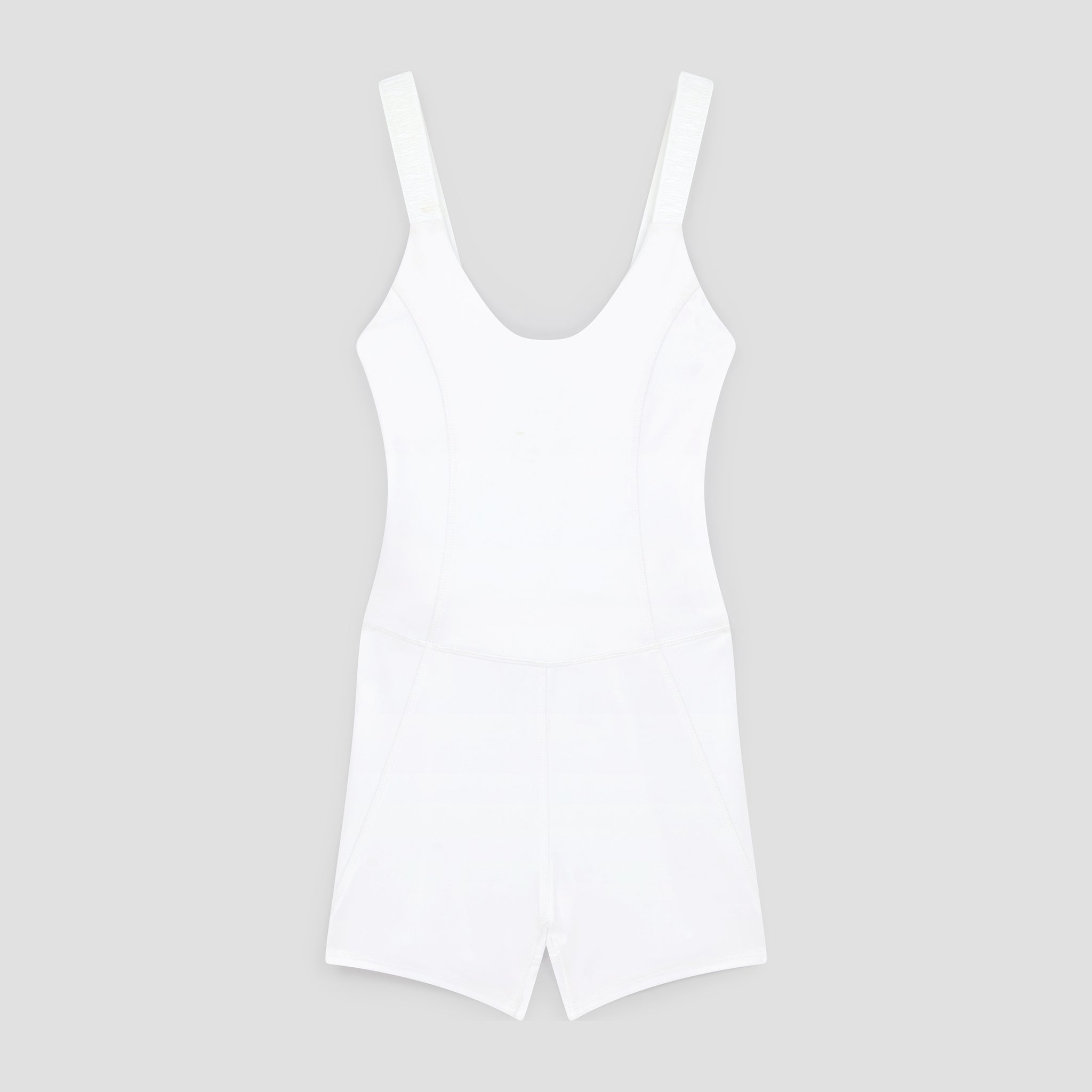 • Pure white bodysuit in butter-soft performance stretch fabric featuring supportive corset style seams that flex with your body