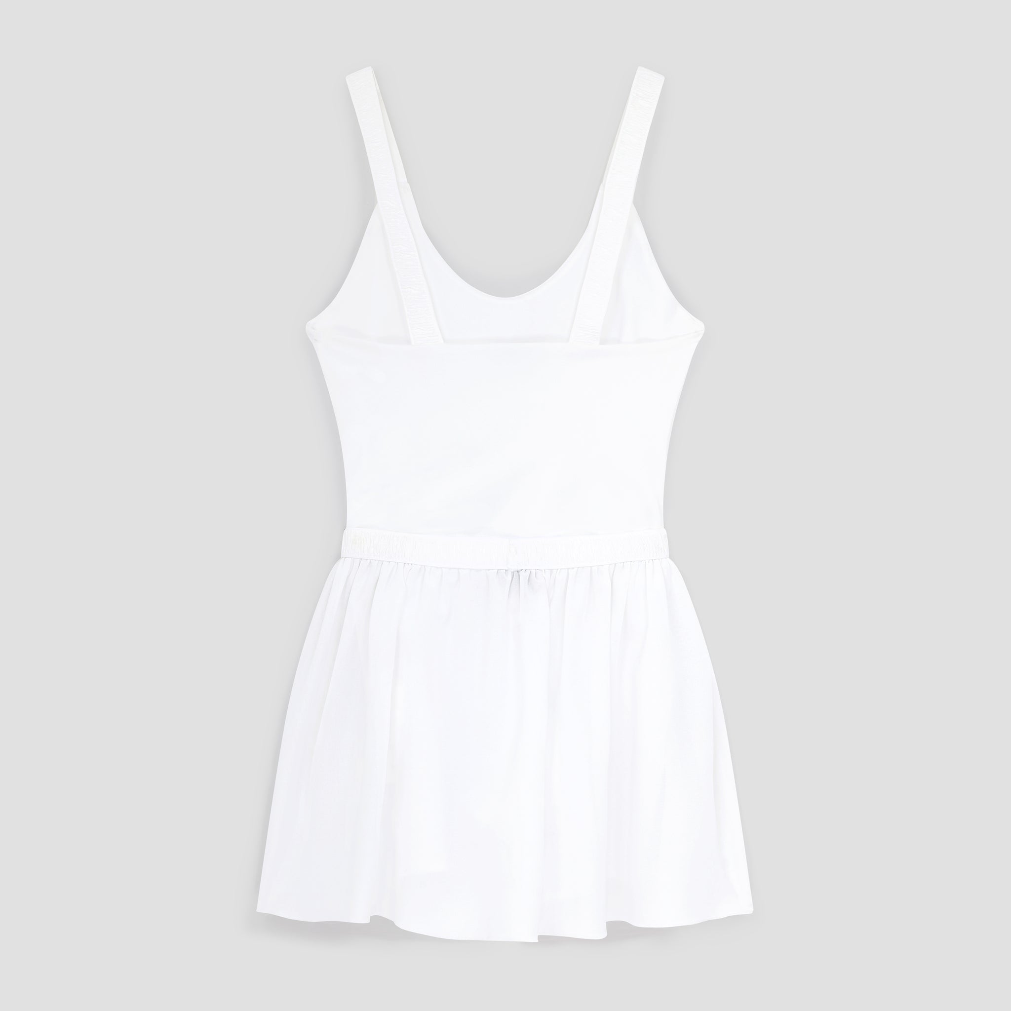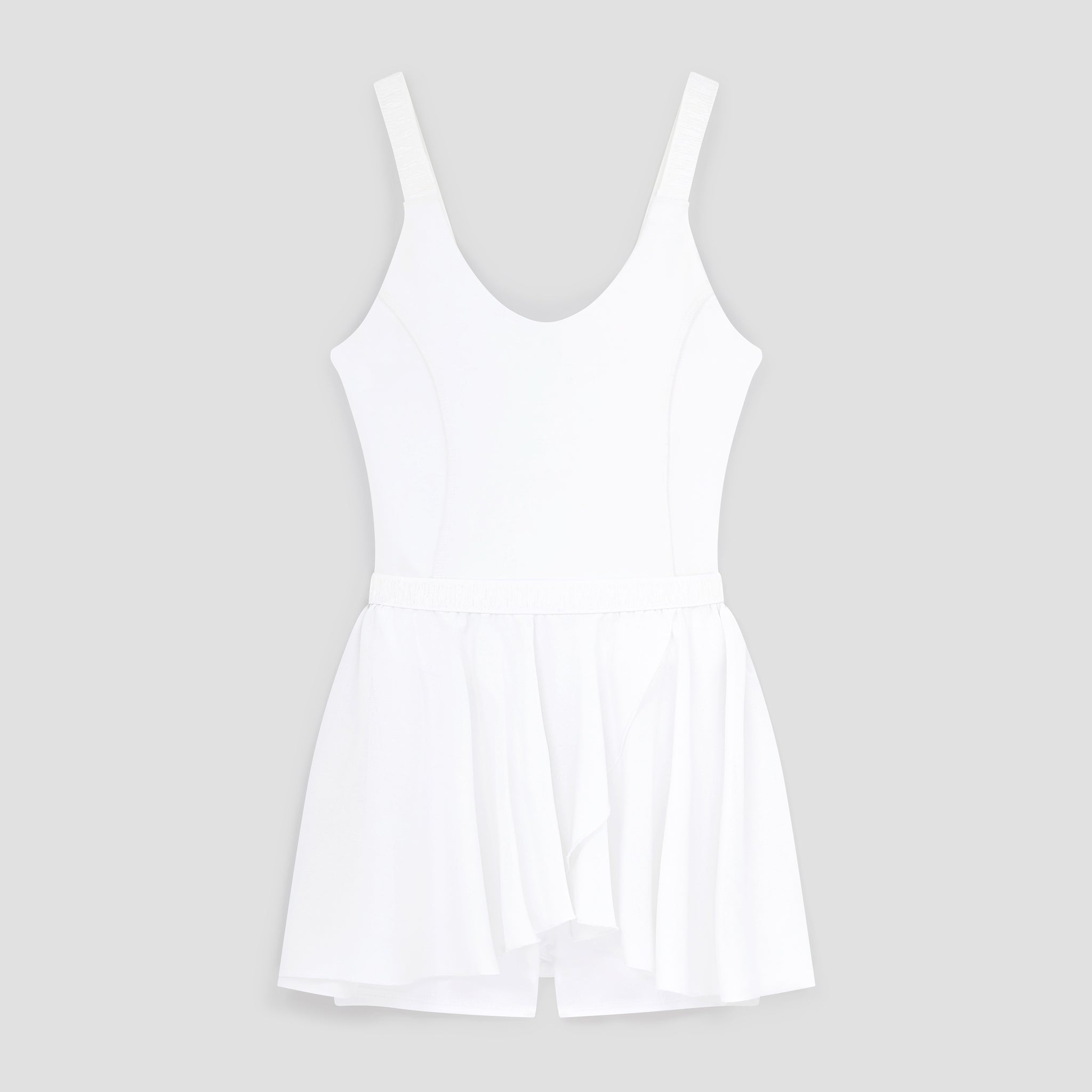 The Liaisons Bodysuit comes with a beautifully constructed Barre skirt featuring a flurry of hand-stitched pin-tucks in silky Italian mesh that wafts over the lower half providing flattering coverage without the bulk of a full skirt. Cut on a slight curve, the skirt also has the benefit of visibly lengthening the leg. Game on Tennis Goddesses!